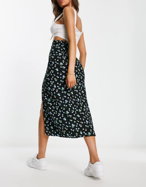 ASOS DESIGN midi slip skirt with thigh slit in dark based floral print Very well made.