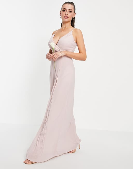 TFNC bridesmaid pleated wrap front cami maxi dress in mink Very well made.