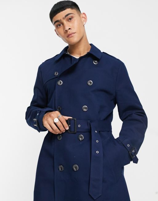 ASOS DESIGN double breasted trench coat in navy check Very well made.