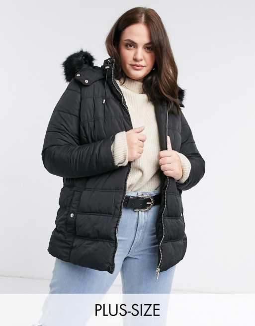 New Look Curve faux fur hooded puffer jacket in black Very well made.