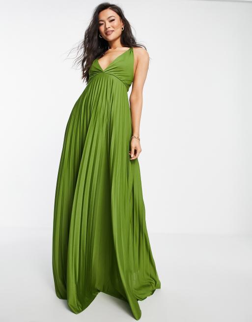 ASOS DESIGN Bridesmaid satin square neck maxi dress in olive green Very well made.