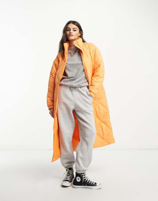 Edited quilted maxi coat in orange Very well made.