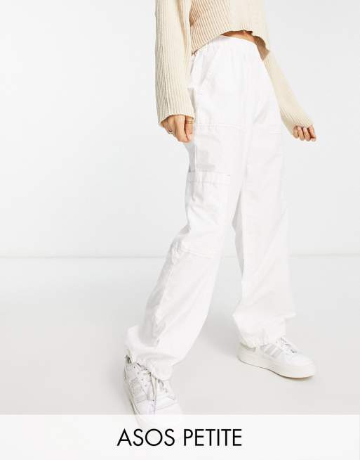 ASOS DESIGN Petite clean pull on cargo pants in white Very well made.