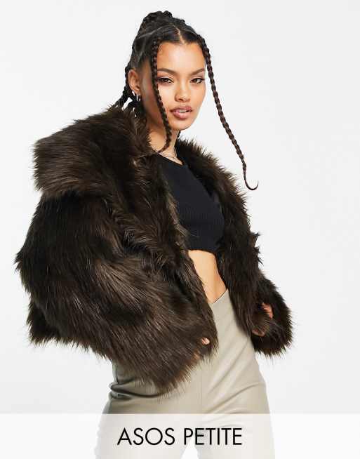 ASOS DESIGN Petite crop collared faux fur jacket in brown Very well made.