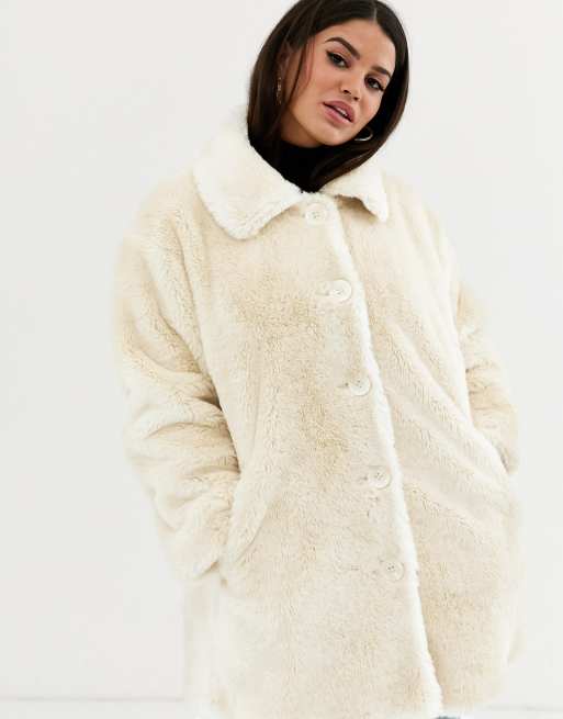 ASOS DESIGN Petite faux fur button through coat in cream Very well made.