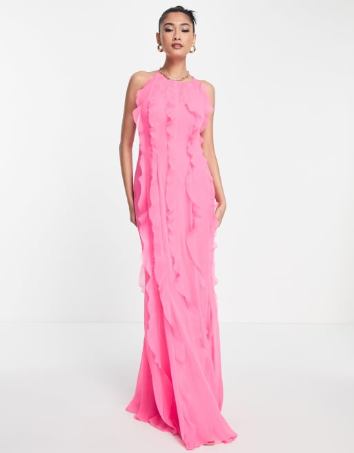 ASOS DESIGN frill cut out maxi beach dress in pretty pink Very well made.