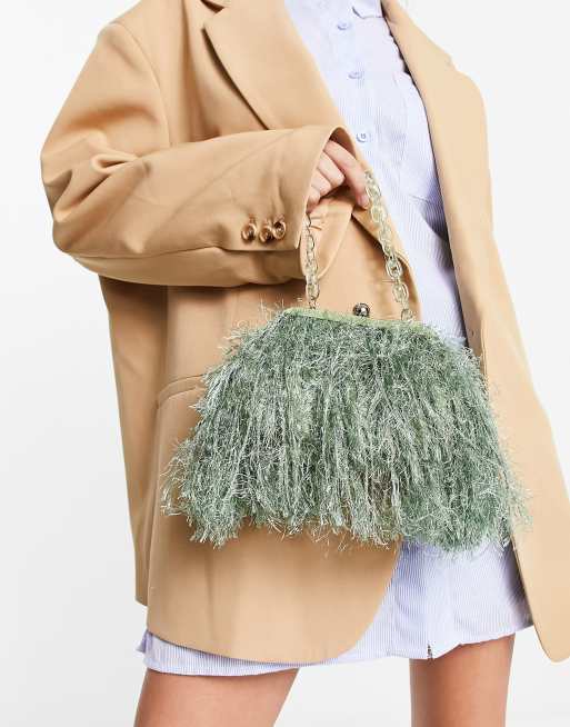 ASOS DESIGN Pochette verde salvia con piume sintetiche e manico Very well made.