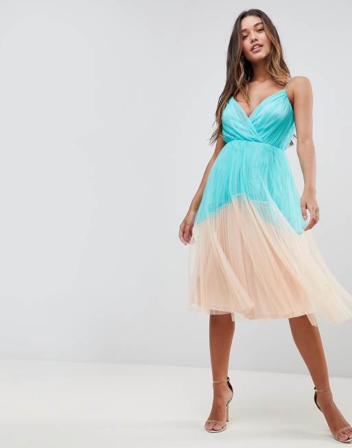 ASOS PREMIUM Pleated Tulle Colourblock Midi Dress Very well made.