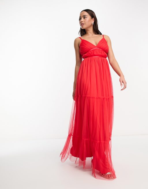 Anaya tulle maxi dress with tiered skirt in bright red Very well made.