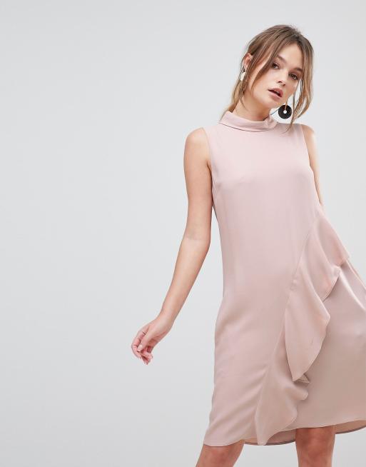 ASOS DESIGN washed high neck midaxi dress with drape shoulder detail in burgundy Very well made.