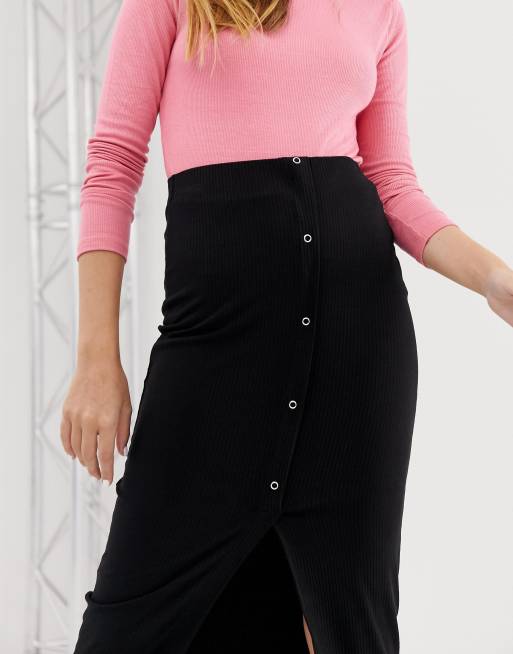 ASOS DESIGN rib popper midi skirt Very well made.