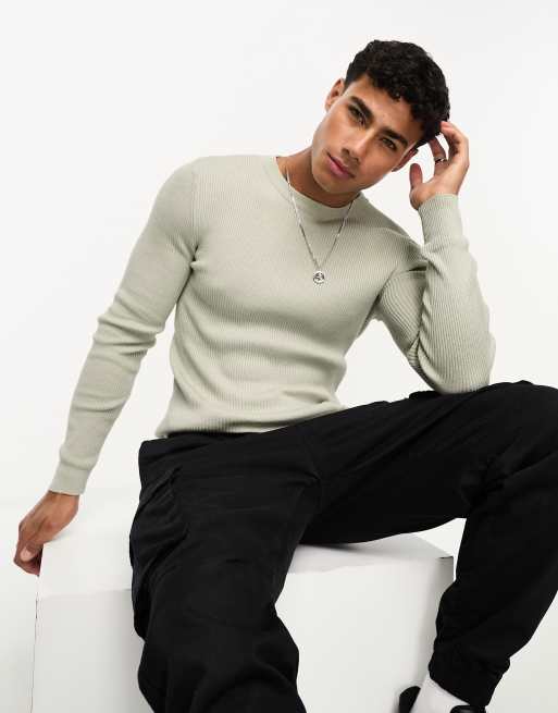 ASOS DESIGN muscle fit knitted essential rib jumper in light grey Very well made.