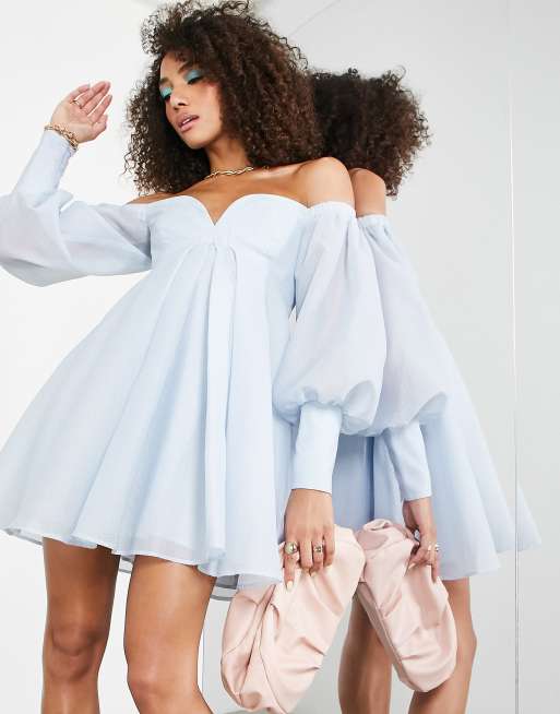 ASOS EDITION Robe courte en organza paules d nud es Bleu pastel Very well made.