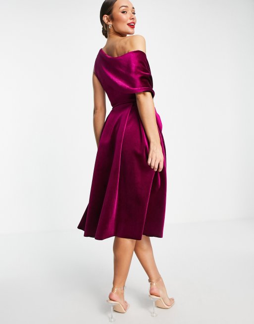 ASOS DESIGN Robe de bal de promo mi longue asym trique en velours Baie Very well made.