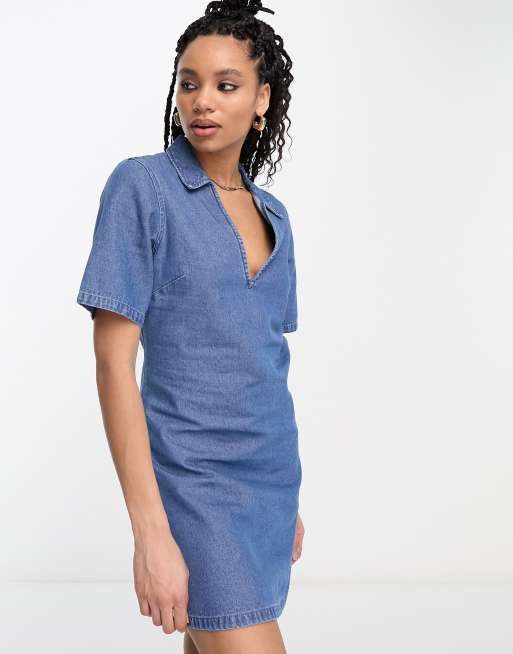 ASOS DESIGN Robe courte en jean avec col Bleu moyen d lav Very well made.