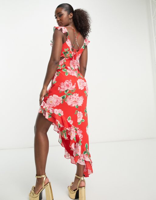 Forever New Robe longue fendue fleurs Rouge ASOS Very well made.