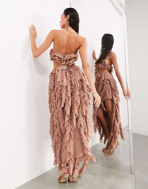 ASOS EDITION Robe sans manches longue volants et d coupes Taupe Very well made.