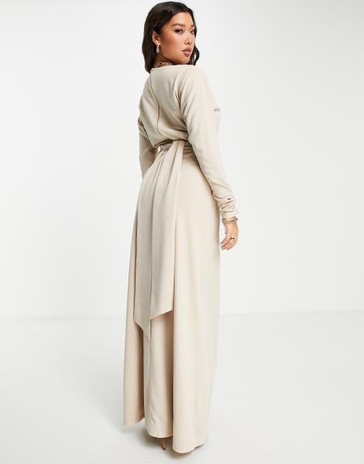 ASOS DESIGN linen ruched sleeve self tie belted maxi dress in stone Very well made.