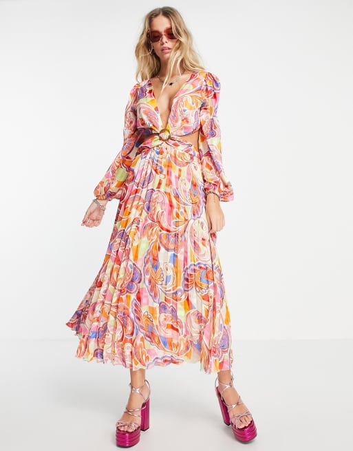 ASOS DESIGN ring detail cutout maxi dress in bright 60 s floral Very well made.