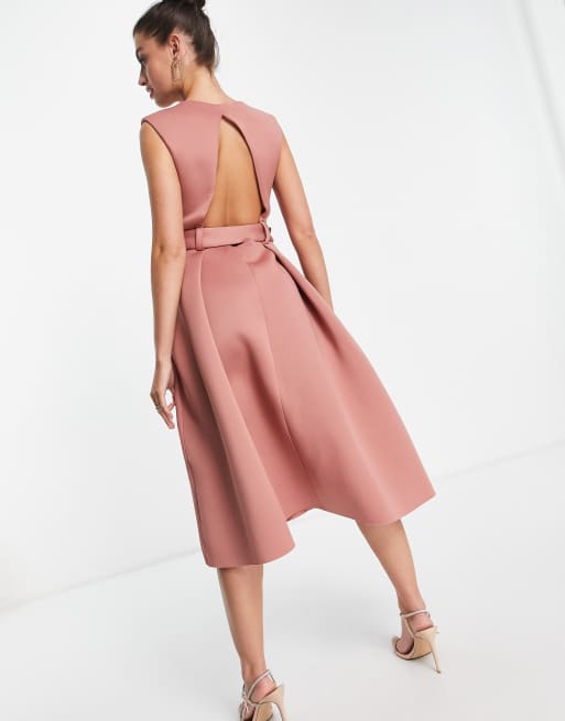 ASOS DESIGN Robe patineuse mi longue de bal de promo encolure carr e torsad e et ceinture Rose th Very well made.