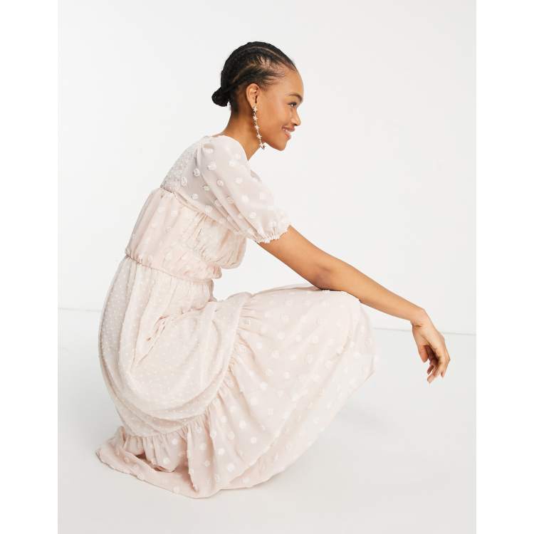 ASOS DESIGN Robe babydoll courte en tissu textur fleuri manches blousantes Rose poudr Very well made.