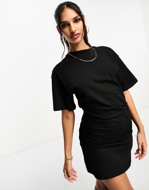 ASOS DESIGN Robe t shirt courte col ras de cou et fronces lat rales Noir Very well made.