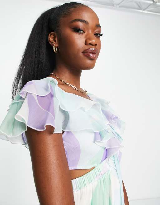 ASOS DESIGN ruffle asymmetric maxi dress in abstract print Very well made.