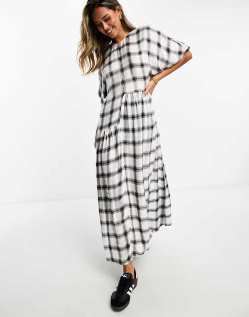 ASOS DESIGN Asymmetrisches Midi T Shirt Kleid in Schwarz Wei mit Karomuster Very well made.