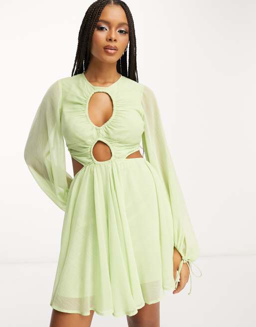 ASOS DESIGN keyhole cut out mini skater dress in khaki green Very well made.