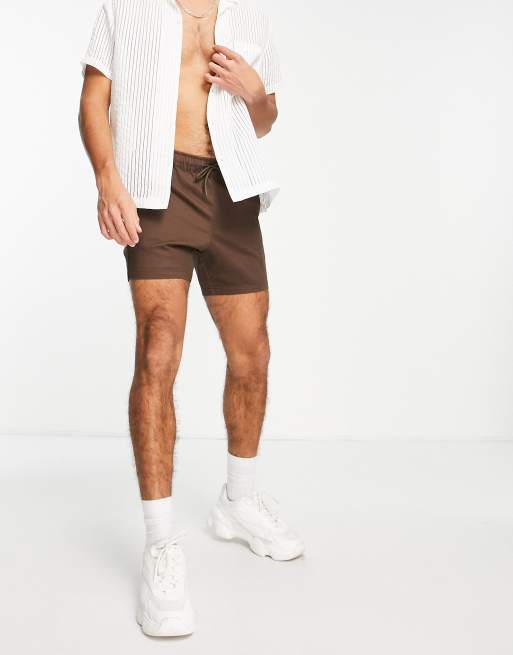 ASOS DESIGN skinny chino shorts with elasticated waist in dark brown Very well made.