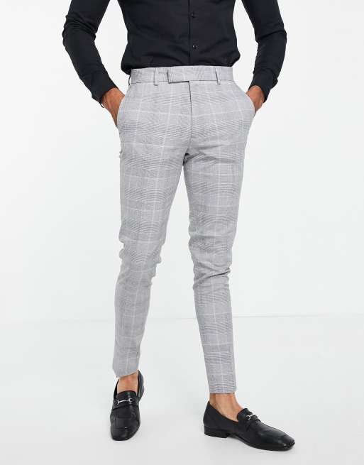 ASOS DESIGN skinny suit pants with prince of wales check in gray Very well made.