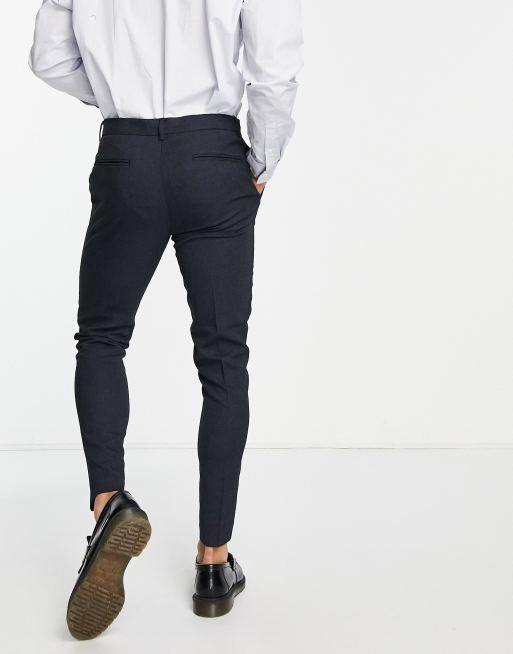 ASOS DESIGN wedding super skinny suit pants in dark navy micro texture Very well made.