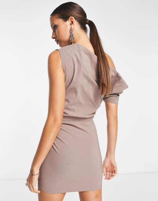 ASOS DESIGN off shoulder structured mini dress in mocha Very well made.