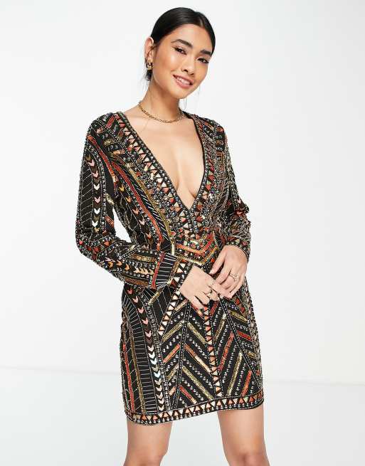 ASOS Design Size 4US plunge structured mini dress paneled Very well made.