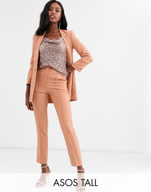 ASOS DESIGN Tall jersey tapered suit pants in pink Very well made.