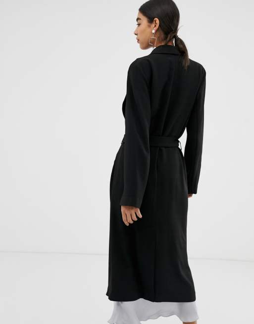ASOS DESIGN waterfall collar coat with tie belt Very well made.