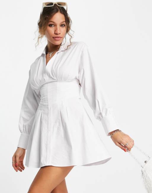Mini poplin shirt dress with box pleats and belt Dresses Women Very well made.