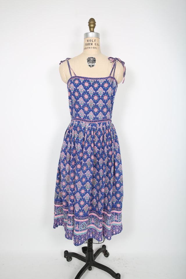 70s Vintage Blue Pink Floral Block Print Sundress Selected by Very well made.