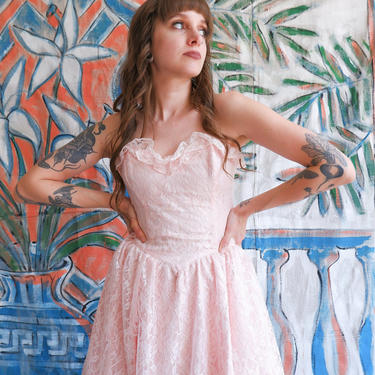 Vintage 80s Pink Lace Gunne Sax Strapless Dress 1980s Pastel Very well made.