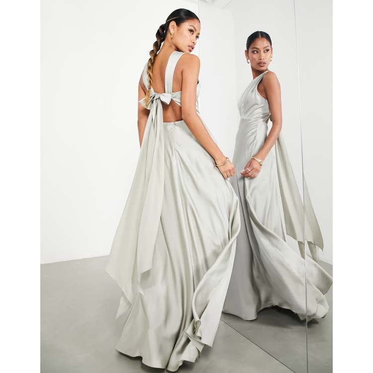 ASOS DESIGN Bridesmaid satin maxi dress with drape back detail in Very well made.