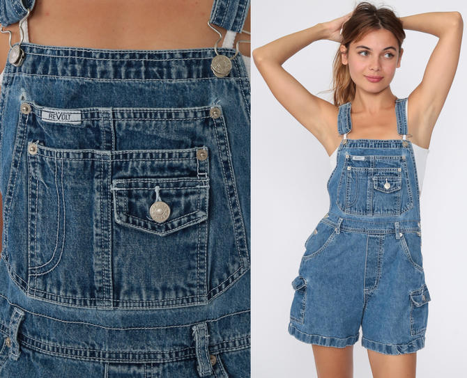 Denim Overall Shorts Revolt Jean Overalls 90s Distressed Jean Very well made.