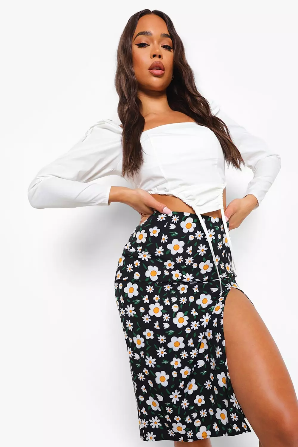 PULL BEAR FLORAL Pencil skirt black Zalando Very well made.
