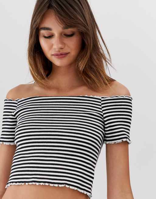 Monki off shoulder cropped t shirt in black and white stripe ASOS Very well made.