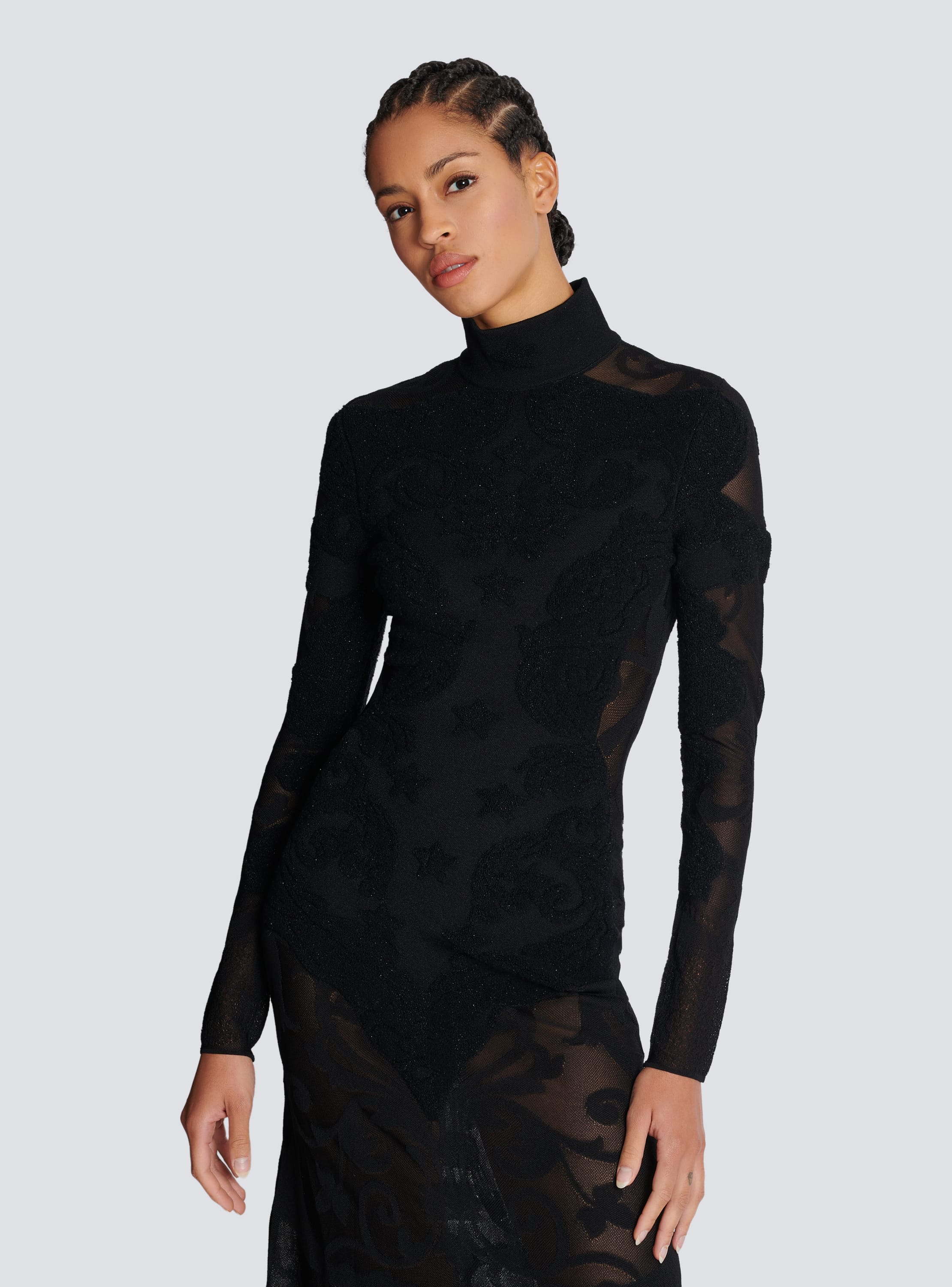 Baroque fine knit dress black Women BALMAIN Very well made.
