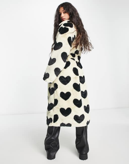 Cruella Deville Black Dot White Fur Long Coat Women s Fur Coat Very well made.