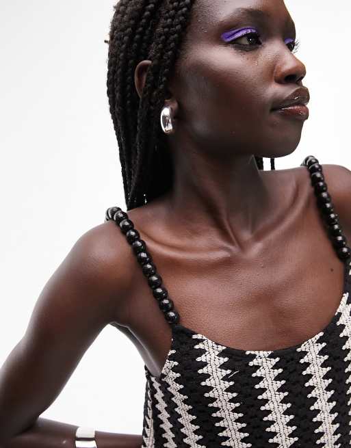 Topshop crochet beaded strap midi dress in mono ASOS Very well made.